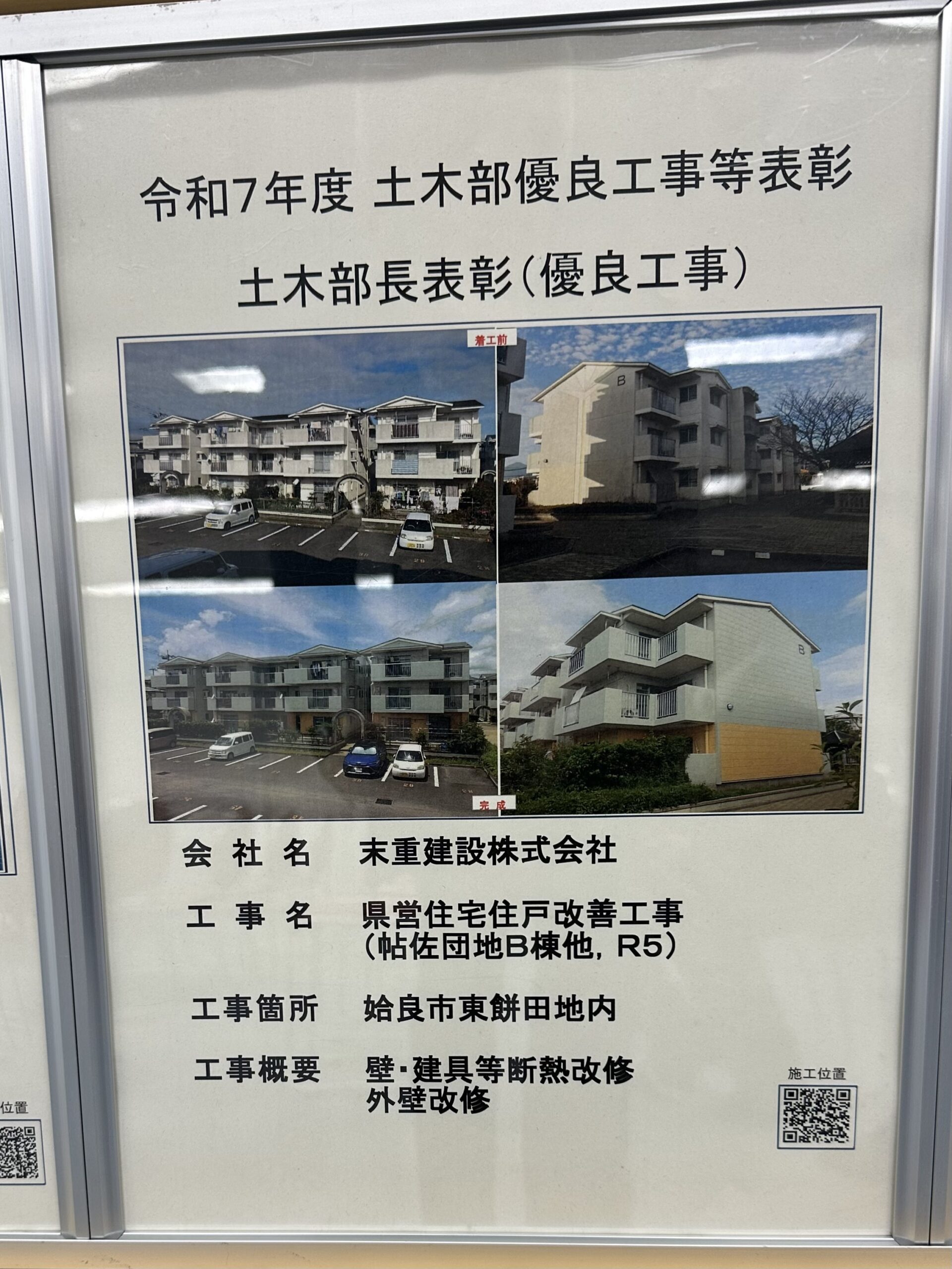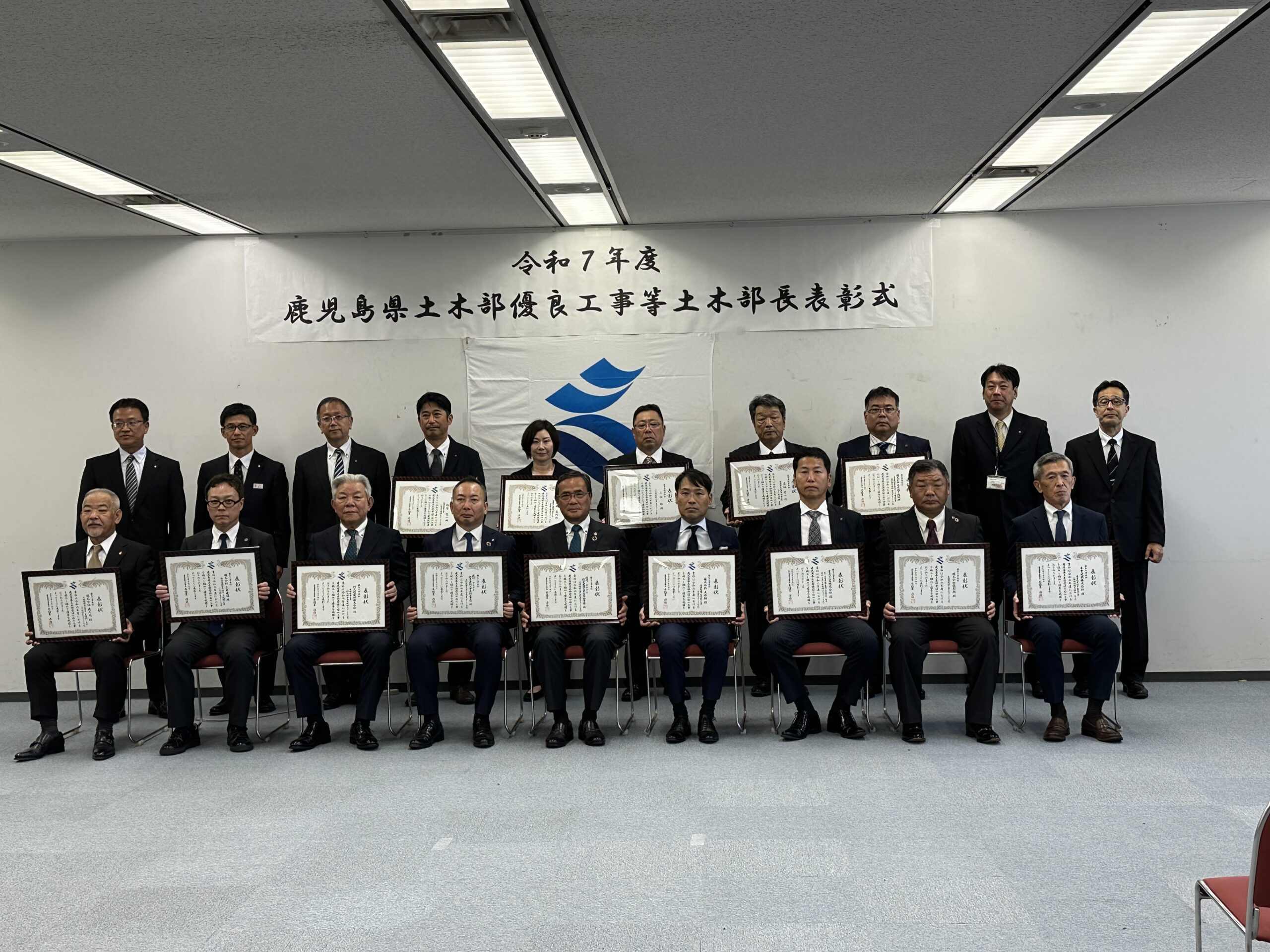 令和7年10月14日、弊社施工の住戸改善工事にて、令和7年度鹿児島県土木部部長表彰を、頂きました。