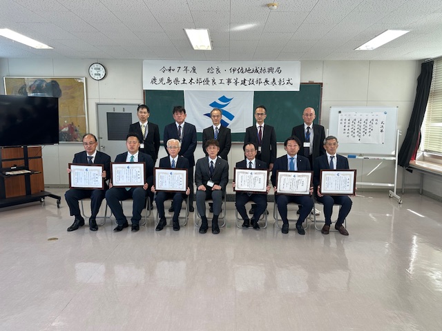 令和7年10月14日、弊社施工の住戸改善工事にて、令和7年度鹿児島県土木部部長表彰を、頂きました。